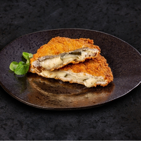 Croquete crocante e suculento, recheado com costela suína desfiada e o sabor marcante do queijo Morbier.